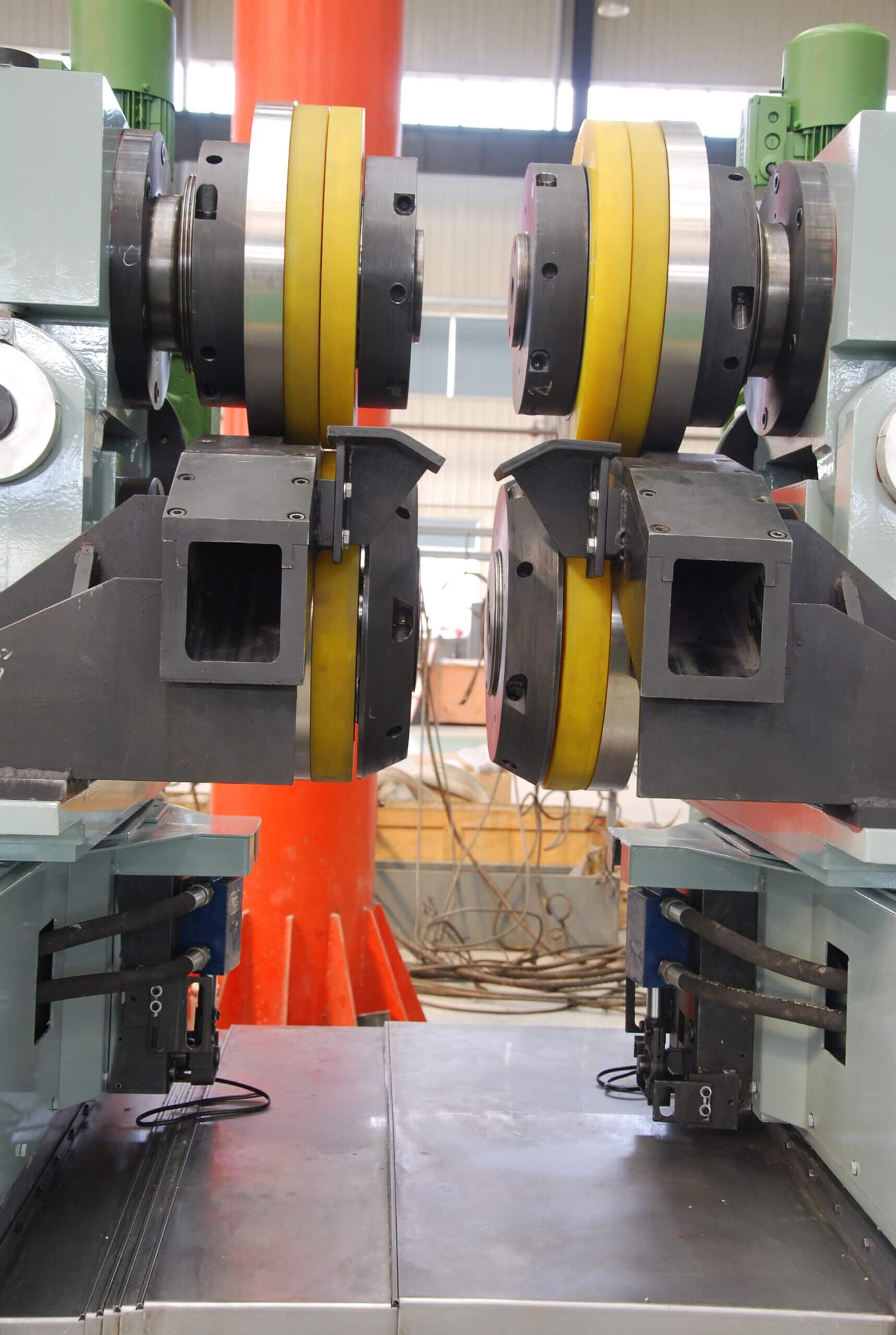 - Opening width adjustment: stripshearing width adjustment driven by two oil cylinders, whichvia servo cylinder to adjust the strip width precision, stroke of the cylinder to ensure opening of the adjustment range.