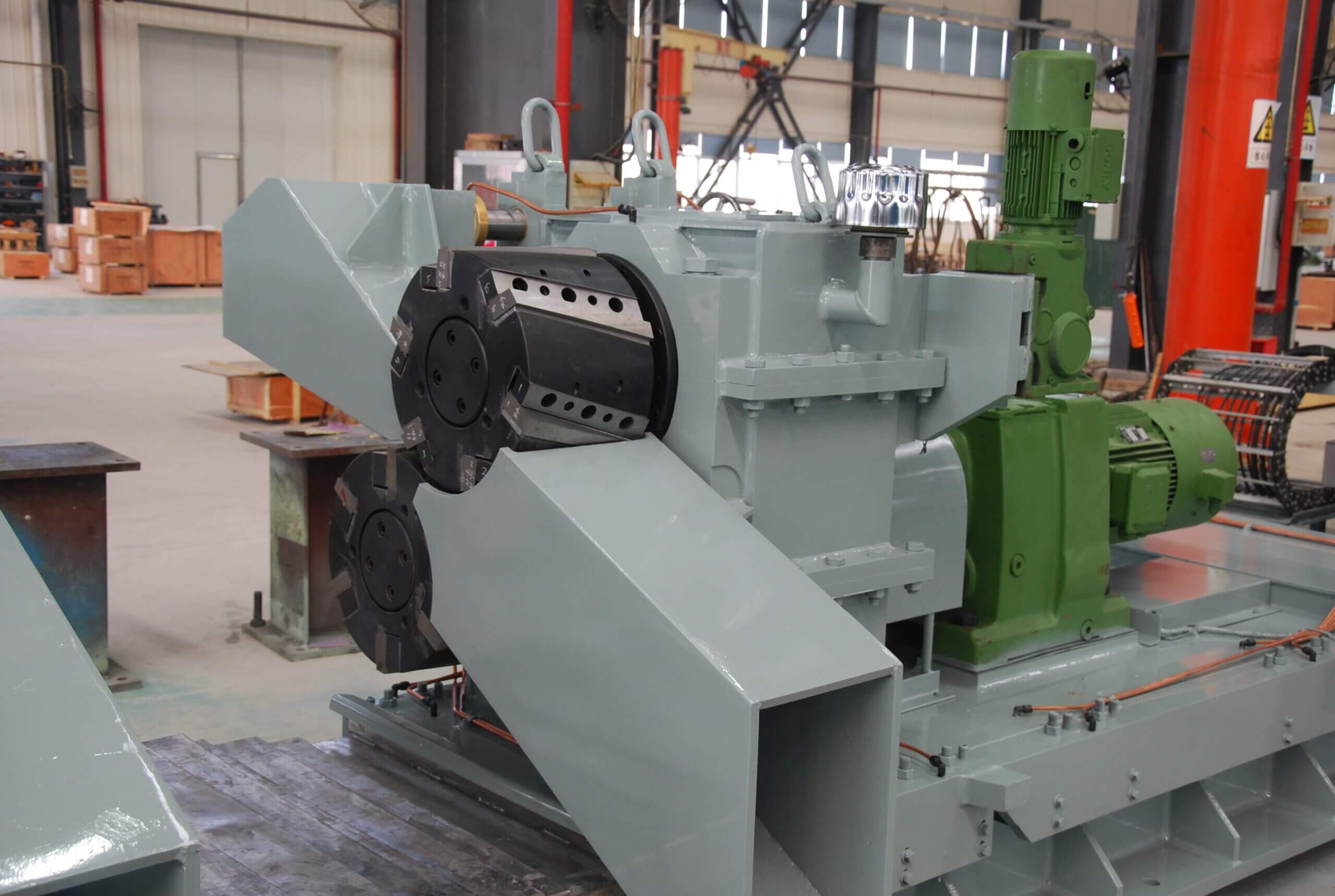 - The structure with double head cantileverrotary hybrid power shear;