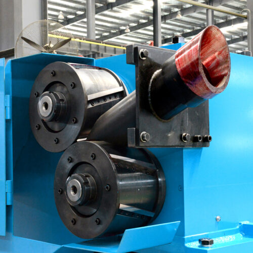 The scrap chopper is used to cut the waste edge to facilitate the waste edge collection and recycling. This scrap chopper is a double roller type, left and right two racks, each frame each one side of the